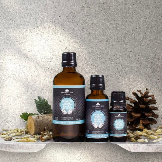 Collection d'huiles essentielles 100% pures et naturelles du Canada : sapin baumier, épinette noire, ylang-ylang, pruche. Aromathérapie authentique pour votre bien-être.